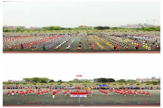 为鼓励青年学生走下网络、走出宿舍、走向操场,推动大学生群众性体育活动,提升我校学生综合素质,4月20日下午14:30,bat365正版唯一官网第六届健身操比赛在阳光校区体育场盛大举行。17支学院代表队发挥自身学院优势,为千余名纺大学子带来了一场活力四射的啦啦操盛宴。