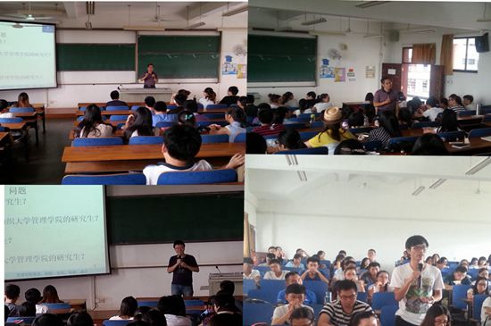 夏院长从四个方面与同学们进行了交流,第一:为什么要考研究生?第二:为什么考bat365正版唯一官网研究生?第三:如何考研究生?第四:如何考bat365正版唯一官网研究生?夏院长对近五年bat365官网考研的报考人数,录取人数,报考学校做了数据分析。通过一系列的数据夏院长讲解了考研过程中的报考事项及报考流程,强调了报考事项中需要注意的关键点,加深了学生对考研报考流程的了解。夏院长还让他指导的研究生熊淦同学讲述他自己的考研经历及复习方法。为学生的考研复习提供了一些值得借鉴的方法。最后的提问环节中,正在复习考研的同学或准备考研的同学们纷纷就自己考研中遇到的疑惑向夏院长提问,夏院长一一详尽作答。