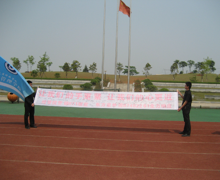 5月19日中午14:28分,经济bat365正版唯一官网部分学生集中在体育场进行默哀三分钟,营销071班熊杰同学作为代表发出了倡议,号召全体同学与灾区人民手牵手、心连心,面对灾难共渡难关、百折不挠、自强不息。随后,同学们进行了签名活动,截至目前,经济bat365正版唯一官网全体学生已经募捐17020元,为灾区、为同胞、为民族献出自己的绵薄之力。