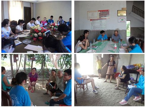 黄潭镇后,按事先规划分为5个实践小组,当地五位镇政府工作人员分别带领5个小组进村入户。师生们不顾夏日炎炎,在交通不便的情况下,坚持步行走访了黄潭片、甘岭片、徐湾马片、罗口片等34个行政村,结合每个村的不同特点,有针对性的开展调查。例如,在黄潭镇居委会学习当地基层党建的一些创新点;在黄潭片9个村走访村民了解党务、村务、财务公开的渠道是否完善、效果是否明显;在罗口片八个村调研民兵小组及应急预案制度。同学们在走访过程中随机抽取当地土壤、井水的样本带回学校化验,为以后公益环保的深入调研做基础准备。