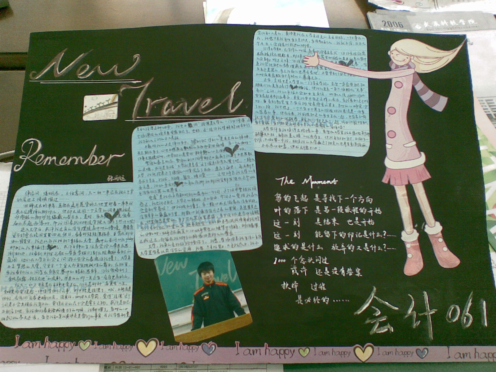3月26日,bat365官网大一各班以“new travel”为主题的团报在阳光校区食堂侧门口成功展出。此次共收到20余副由班级同学制作精美,内容丰富的作品。