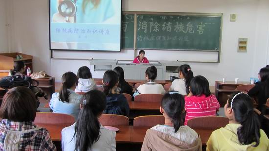 聂琪医生首先介绍了结核病的概念,以及引发结核病的罪魁祸首——结核分枝杆菌的特点。紧接着,她又详细说明了结核病的传播途径,临床表现,及诊断方式方法和预防措施。聂琪医生说道,目前我国结核病疫情严重,感染人数多,死亡人数多,特别是在农村,结核病疫情居高不下。所以她强调,既然我们不能拒绝感染,那就要加强预防,同学们应做好日常预防:勤消毒,多开窗通风,并培养良好的卫生习惯。有了对结核病的基本了解,同学们的疑虑基本消除,许多人踊跃举手询问。