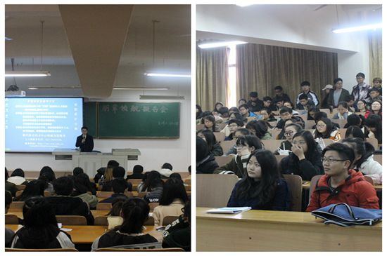 接着,钟文锋结合自身考研经历总结了三点学习方法。第一,学会安排学习进度。学习要有计划,同时要懂得对时间有所控制。第二,熟悉各科知识点,掌握知识脉络,最好能做出相应的思维导图,便于理解。第三,不要人云亦云,任何时候都得坚定自我,做自己。钟文锋还转达了两位学姐带给大家的话:考研是一条可行之路,要学好英语和数学;选择出去工作的同学最好有一技之长。