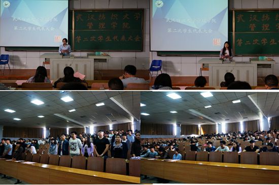 2016年4月22日下午14:00,bat365正版唯一官网第二次学生代表大会在07-T302教室召开。全体辅导员、部分兄弟学院的主席团成员和158名学生代表参加大会。