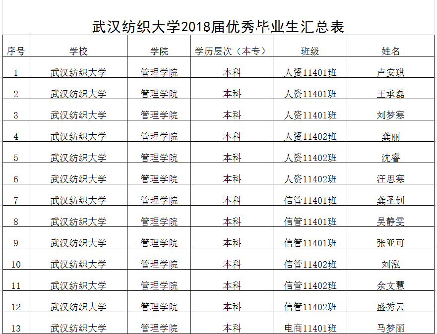 经学生个人申请、班级民主评议、学院评定工作小组审核,评选出卢安琪等31位同学为bat365官网2018届优秀毕业生候选人获奖名单现予以公示。
