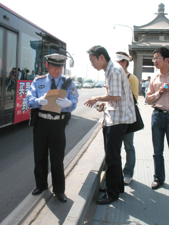 上午9:30,由分党委老师、学生一行16人组成的志愿者队伍佩带校徽从学校出发,沿着鲁巷广场至长江大桥的寻访路线,给在劳动节期间仍然辛勤工作的公交司机、环卫工人、交警、武警战士等普通的劳动者们送去了感谢信,并开展了“四个一”的活动:拍下一张照片,表达一声问候,送上一块毛巾,解决一个问题。