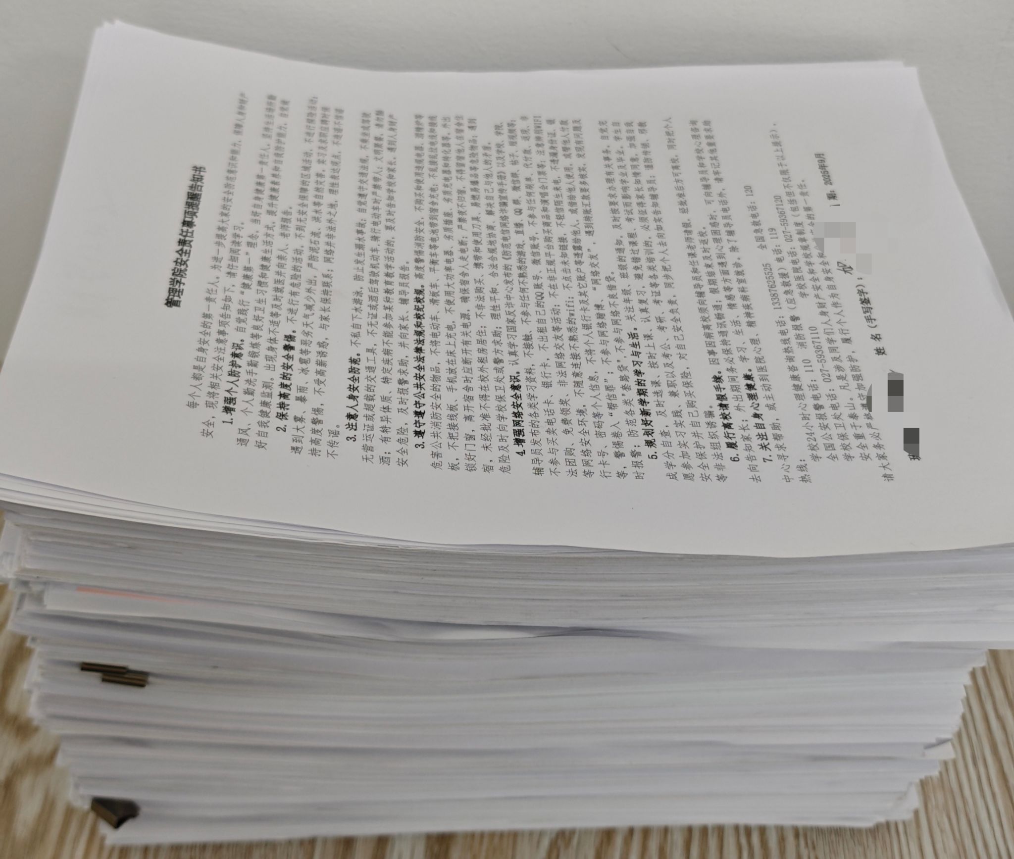 《bat365正版唯一官网安全事项提醒告知书》