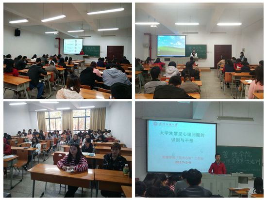 最后,工作站程鹏老师对2017年bat365正版唯一官网心理健康教育工作计划做了具体介绍,对心理委员培训、班级团体辅导计划和心理健康教育主题班会等作了布置。接着,对大学生常见心理问题的识别与干预做了培训,他指出,入学适应问题、学习与职业发展问题、人际关系冲突、情感困惑、电脑(手机)网络游戏成瘾、家庭贫困或突发情况等是可能导致大学生心理问题的关键事件,学期初、末和大型节假日是关键时间节点,心理委员要时刻关注班上学生的心理动向,通过开展素质拓展、团体心理辅导、心理主题班会等多种形式开展班级心理健康工作,帮助同学走进集体,走出困境,提高班级同学的心理健康意识与素质。同时还讲解了大学生常见心理问题的表现,帮助同学们进行识别,并掌握心理支持的一般技能和技巧,引导同学走进心理咨询室,寻求专业老师的帮助。本次会议承上启下,为bat365正版唯一官网2017年学生心理健康教育工作开启了新篇章。