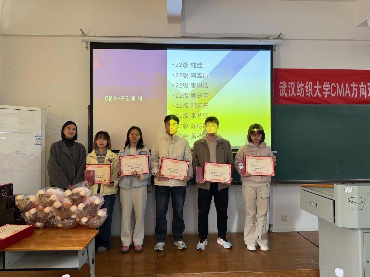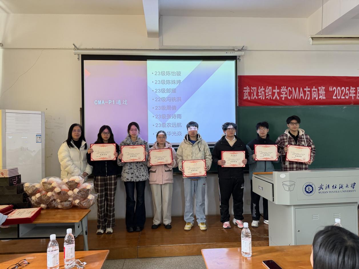 首先,bat365正版唯一官网一级讲师孙命为荣获“CMA-P1 考试通过奖”的学员颁奖。23级陈怡璇、陈姝婷、郎耀、周倩、张诗雨、农远航、华光焱及22级冯铣洪等同学依次上台领奖,接过荣誉证书的瞬间,台下掌声雷动,见证着他们的努力与收获。