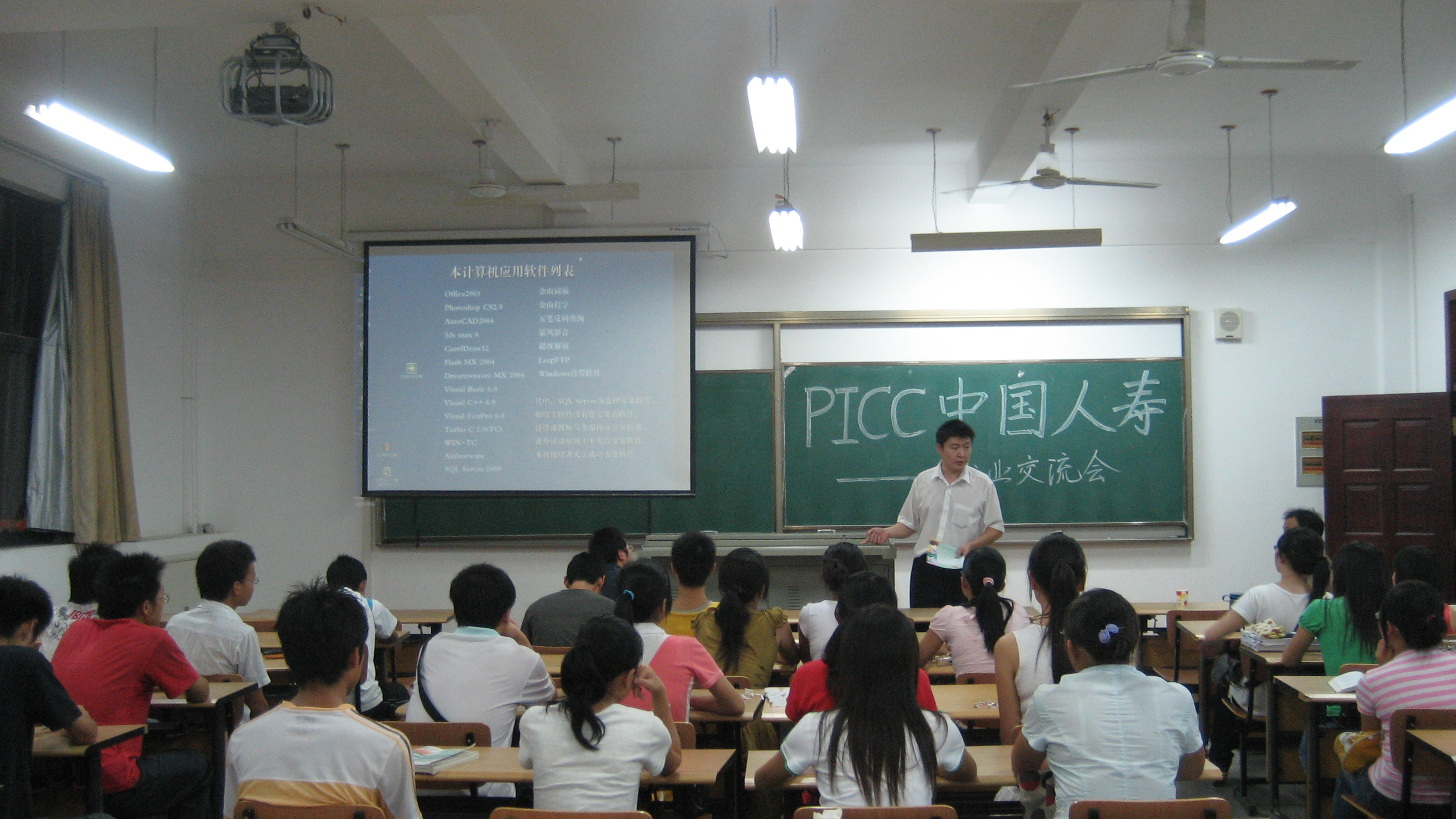 9月19日晚7:00,中国人寿保险股份有限公司在03-411教室举行经管学院营销专业就业交流会,中国人寿保险股份有限公司武汉市分公司区域收展部高级客服经理张一、区域客服专员张忠出席了就业交流会。