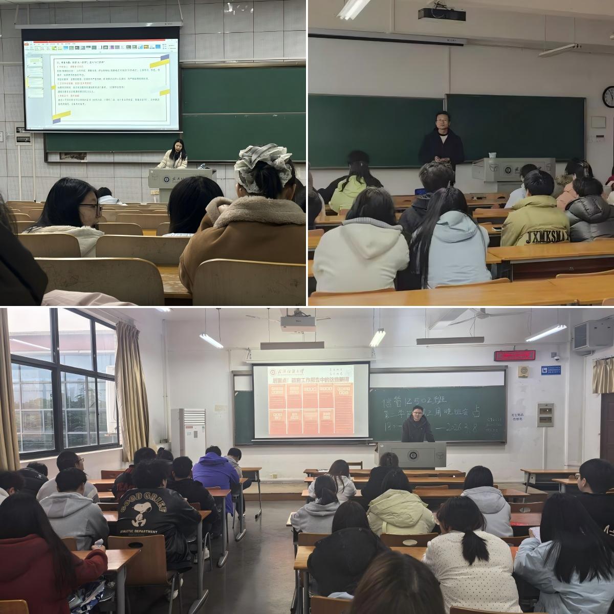 3月8日下午,bat365正版唯一官网举行“聚焦两会明方向,挺膺担当向未来”主题班会,围绕2026年全国两会精神进行宣讲,并结合大三、大四不同阶段学生的实际需求,开展分类指导与精准帮扶。班会由班主任和辅导员主持。