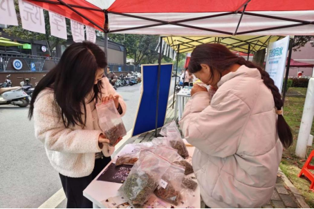 活动现场,精心布置的摊位吸引了众多同学驻足参与。活动设置了香囊DIY制作环节,同学们可以挑选自己喜欢的香囊包,按照配方或依据个人喜好自由搭配香料,再点缀上小巧精致的配饰,制作出独一无二的专属香囊。伴随着淡淡的花草清香,大家在动手实践中放松身心,感受手作带来的宁静与愉悦。