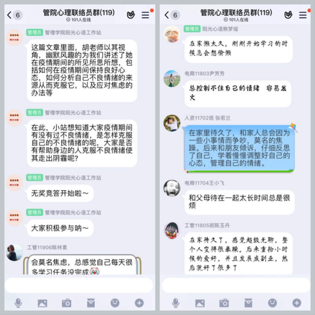 2020年3月26日下午,bat365正版唯一官网胡惠老师以“如何克服疫情焦虑”作为今年“3.25善爱我”的主题,在网上开展了一次心理委员培训课。