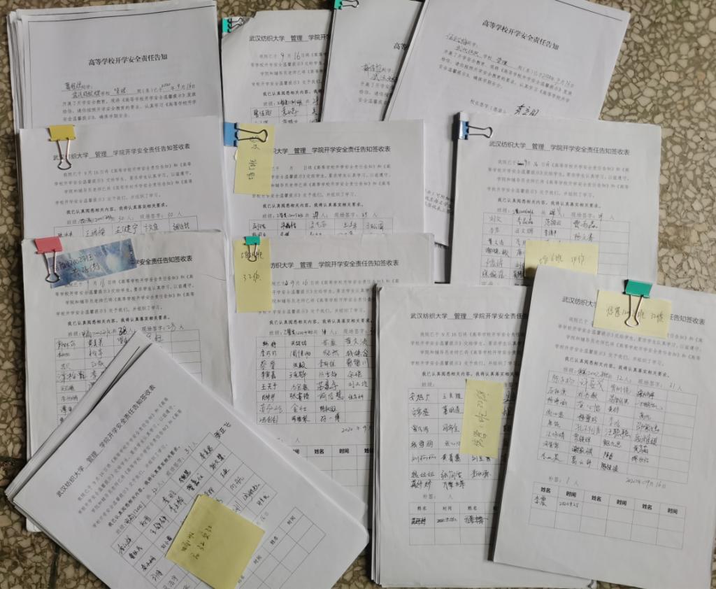 最后,汪老师宣读了《高等学校开学安全责任告知》和《高等学校开学安全温馨提示》,并以班级为单位现场逐一签订并存档。本次活动旨在提高学生的安全防范意识,提升学生对安全问题的认识,为同学们正常的生活和学习打下良好的基础。