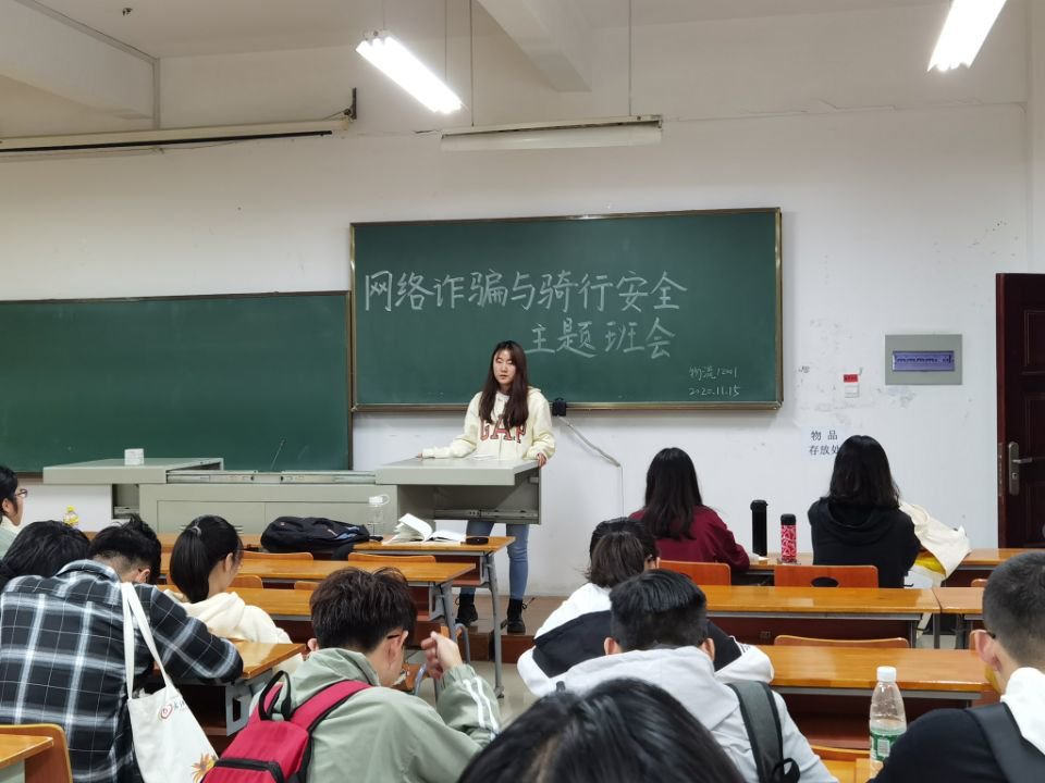 会上,汪老师以学生校园骑行安全教育为主题,结合常态化疫情防控安全、网络安全、财产安全和消防安全等方面进行了温馨提醒,强调安全意识的重要性。随后,汪老师通过近期学校高发的电信网络诈骗案例强调了网络安全和校园贷的危害,并提醒同学们保护个人隐私,增强安全防范意识,守住安全的底线。