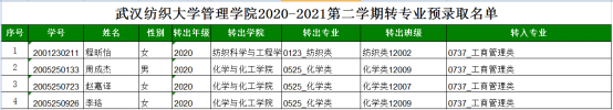 按照学校教务处下发《关于2020-2021学年第二学期转专业工作的通知》的精神和《bat365正版唯一官网关于2020-2021学年第二学期转专业面试方案》要求,bat365正版唯一官网坚持公开、公平、公正的原则,认真组织并完成了本次转专业工作,现将2020-2021学年第二学期转专业预录取学生名单公示如下: