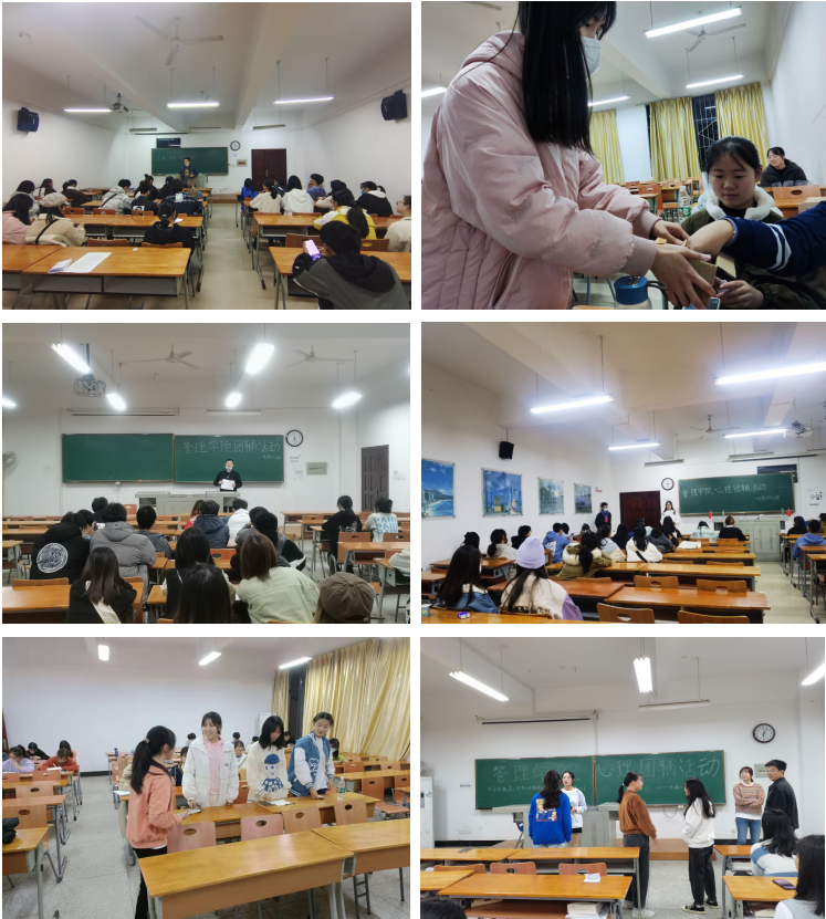 此次活动,各年级分别以“适应大学、融入集体”“如何减轻考试压力”“我运动、我健康、我快乐”等主题开展班级团体心理辅导。活动刚开始,同学们在自我介绍、游戏和文艺表演等多个环节中,一展青春活力。低年级学生,主要以“适应大学、融入集体”“我运动、我健康、我快乐”等主题,彼此之间相互交流,其中21级工管6班学生组织开展“写下我眼中的你”活动,让班级同学进行相互评价,写出评语,同学们欢声笑语,团辅活动让彼此拉近了距离。高年级同学主要讨论“如何减轻考试压力”“直面挑战、筑梦未来”等主题。面对期末考试、考研、考公的压力,同学们相互交流和学习,在紧张的学习中能够静下心来,回想自己的初心,此次团辅活动让大家静下心来,畅所欲言,缓解了各年级学生的心理压力。