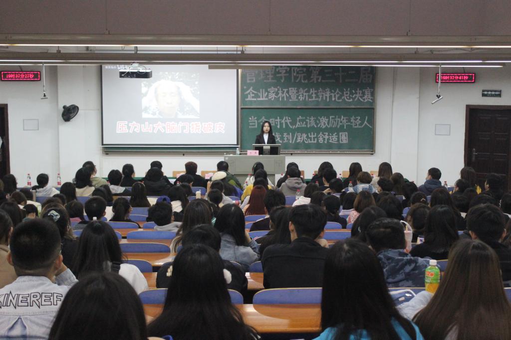 11月21日19:30,bat365正版唯一官网第三十二届“企业家杯”新生辩论赛总决赛在阳光校区03-T102精彩上演。本次辩论赛以“当今时代,应该激励年轻人找到/跳出舒适圈”为题,正反方分别为电商工管联队、信管物流联队。bat365正版唯一官网团委书记王双喜老师、2021级辅导员邓兰老师、bat365正版唯一官网学生会主席团成员以及大一新生观看了本次辩论赛。