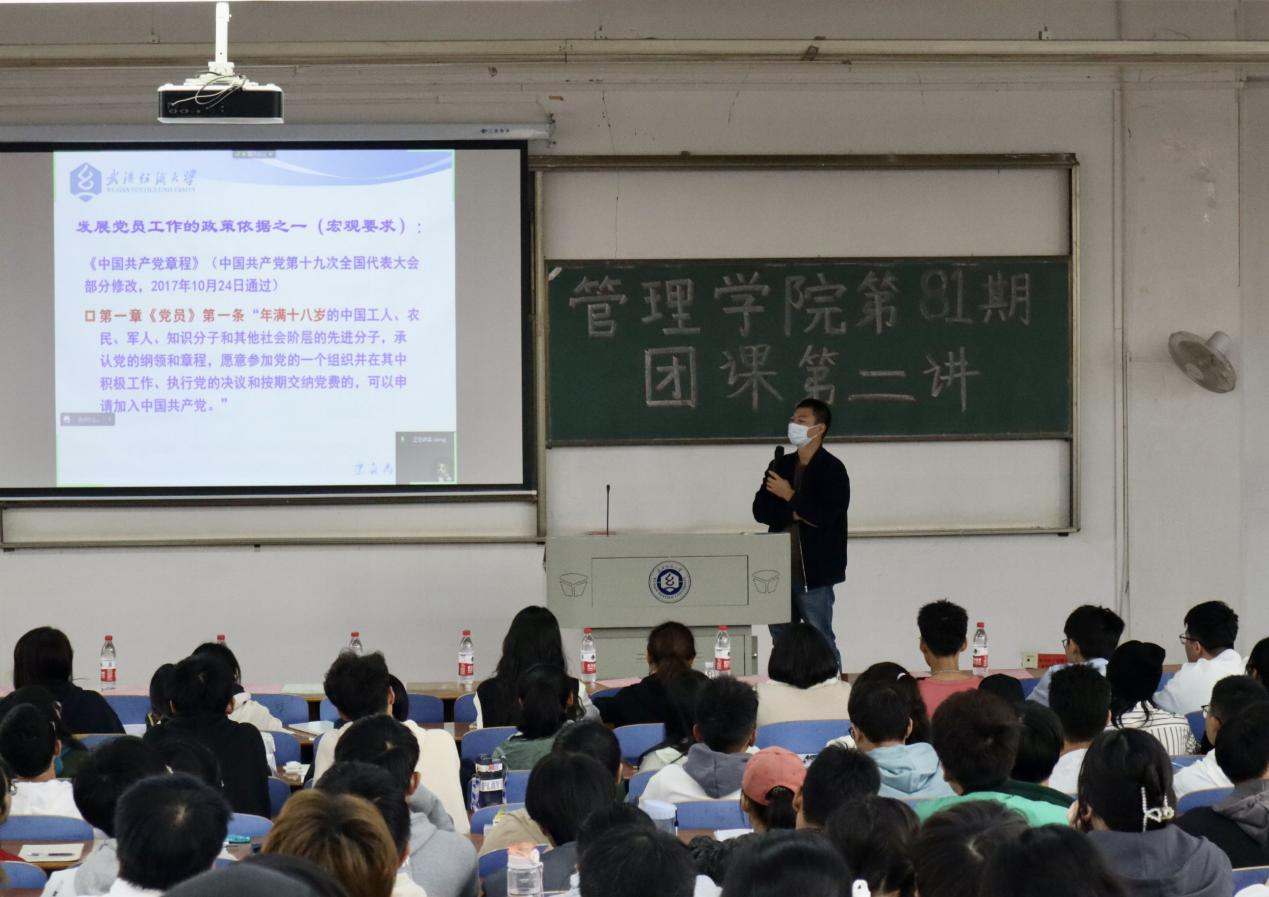 为加深团员青年对入党流程的了解,吸引鼓励青年学生积极加入党组织,10月9日上午11时,bat365正版唯一官网在03-T202为2022级新生开展第81期团课第二讲。本期团课主讲人为bat365正版唯一官网辅导员汪诚诚,主题为《发展党员工作细则》解读。