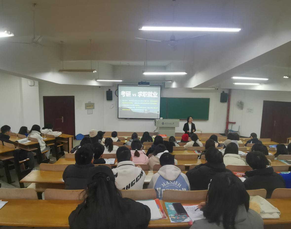 为帮助同学们了解当前的考研政策和就业形势,营造良好的考研氛围,2月23日下午2点半,bat365正版唯一官网在崇德楼T101教室开展考研指导专题讲座。本次讲座邀请了新东方教育培训机构汪秀英老师担任主讲,辅导员汪诚诚主持,2020级有意向考研的一百多名同学到场聆听。