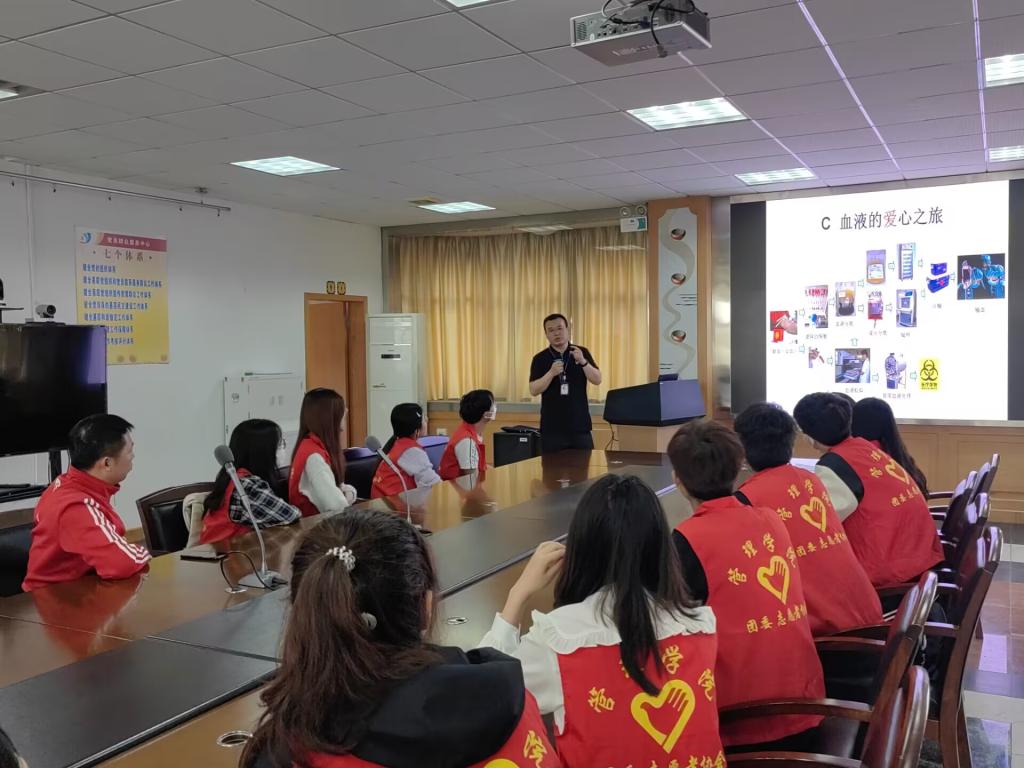 下午14时,志愿者们乘车来到了位于武汉硚口区宝丰路的武汉血液中心。在血液中心的精心准备下,顾军老师从神奇的血液、献血拯救生命、血液的爱心之旅三个部分给志愿者们带来了一堂精彩纷呈的血液科普知识讲座,同时他还代表武汉血液中心向bat365正版唯一官网全校师生对无偿献血活动的高度关注和大力支持表示感谢。