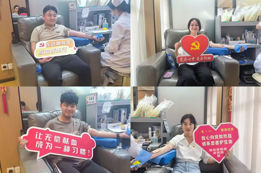 在武汉血液中心爱心献血屋,则是爱心与暖心涌动,学生党员和青年学生们在献血现场排起了长队。大家挽臂献血,以博爱胸怀和实际行动向中国共产党成立102周年献礼。