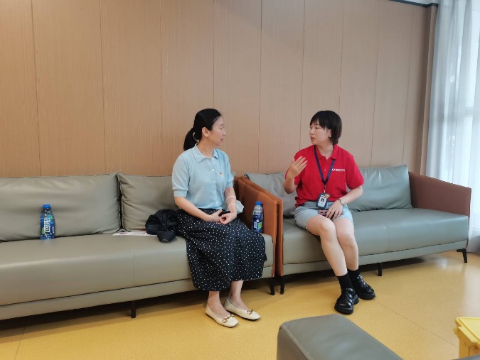 在武汉血液中心会议室,耿迪与血液中心招募科党支部负责人就如何通过组织联建、活动联办、公益联创加强基层党组织建设进行了深入交流。