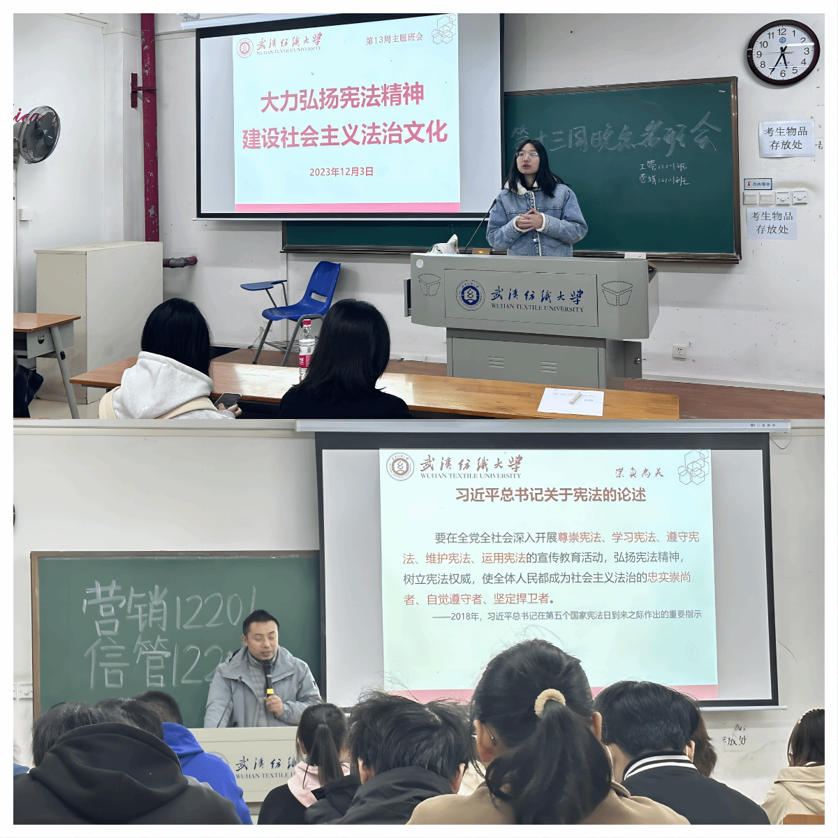 2023年12月1日至12月7日是我国第六个宪法宣传周,为大力弘扬宪法精神,强化大学生法治思维,增强宪法意识,12月3日下午,bat365正版唯一官网开展“大力弘扬宪法精神 建设社会主义法治文化”主题教育班会,各班班主任和辅导员主持,全院所有班级学生参加。