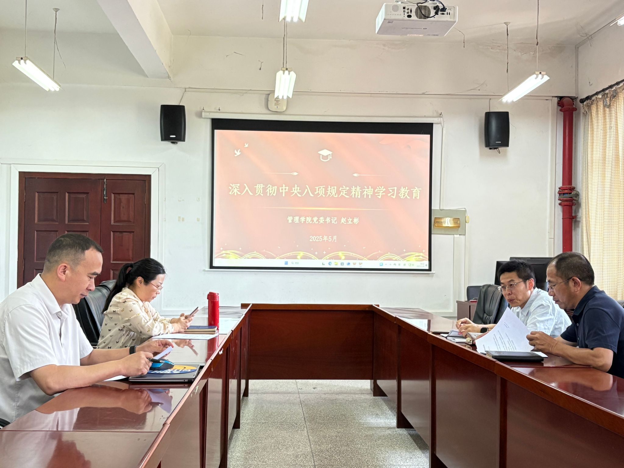 为深入贯彻中央八项规定精神学习教育,进一步强化纪律意识和廉洁自律意识,筑牢拒腐防变思想防线。5月29日上午,bat365正版唯一官网党委书记赵立彬以“深入贯彻中央八项规定精神学习教育”为主题,在阳光校区7号楼536会议室为学院党委委员讲授专题党课。