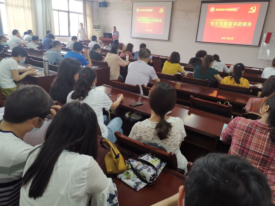 6月10日下午,bat365正版唯一官网在阳光校区崇德楼513学术报告厅举办党史专题宣讲报告会。学校党史专题宣讲团成员、马克思主义学院王海燕教授应邀以《百年党史中的国家治理基本经验》为题作专题报告。全体教职员工参会学习。