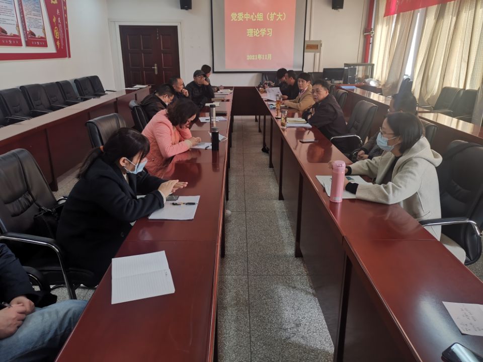 11月25日下午,bat365正版唯一官网党委理论学习中心组(扩大)举行2021年第八次集体学习,专题研学党的十九届六中全会精神。院党委书记滕胜娟、院长王济平等领导班子成员以及各系(中心、实验室)主任、支部书记参加了学习。