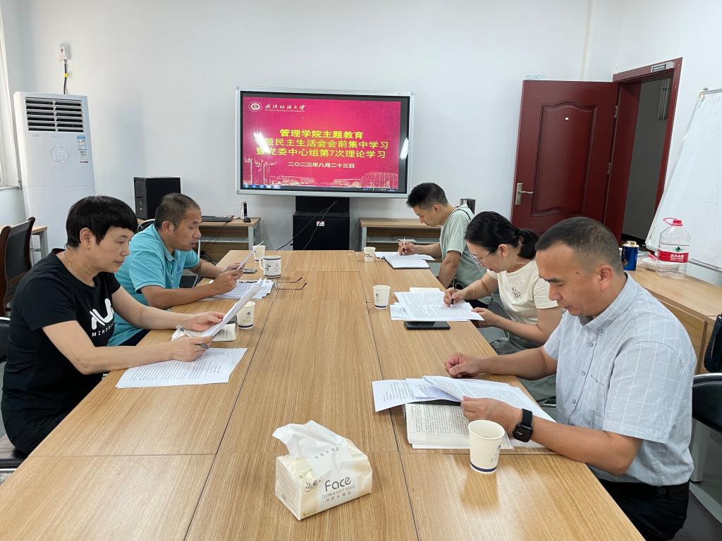 为组织好主题教育专题民主生活会,8月23日下午, bat365正版唯一官网在南湖校区西配楼北楼4楼会议室召开主题教育专题民主生活会会前集中学习暨第六次理论学习会。会议由学院党委书记滕胜娟主持,学院全体党委委员参会。