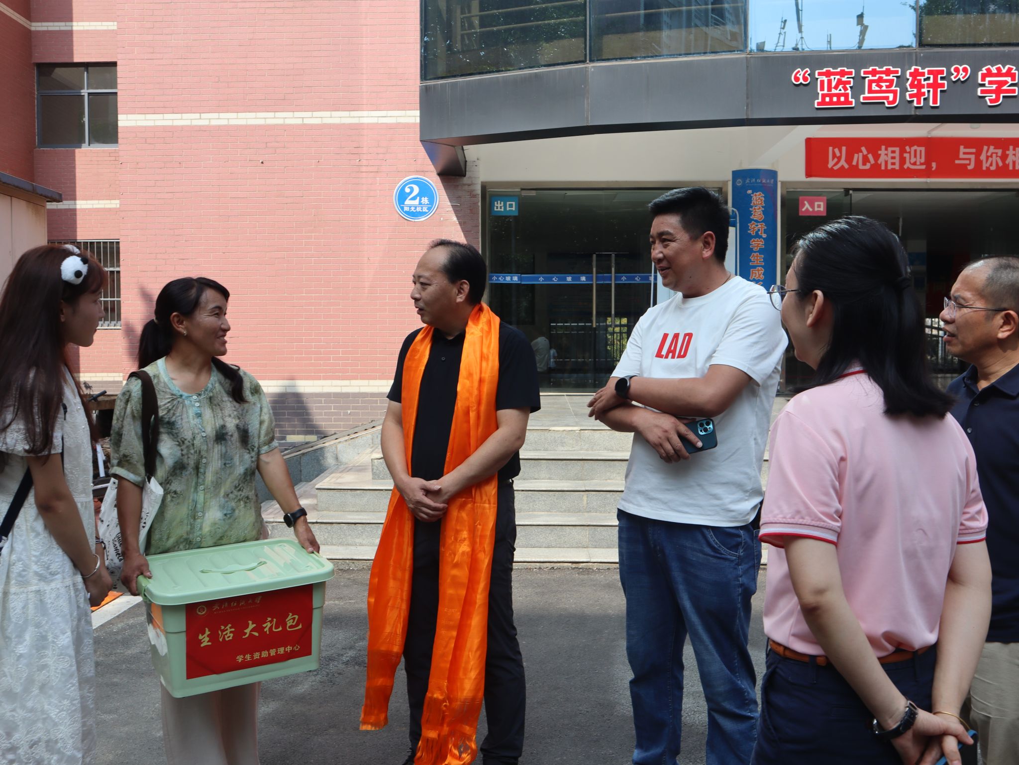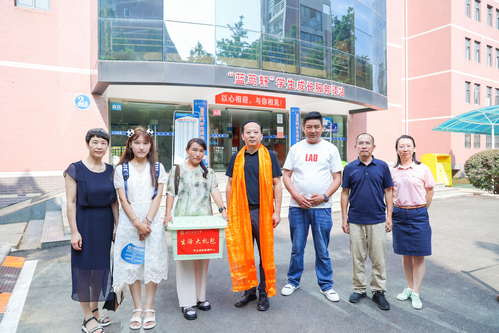 随后冯军向新生赠送了开学大礼包,勉励学生在大学里珍惜时光,不断夯实专业知识,用奋斗书写逐梦路上最亮丽的色彩。学生家长对学校和学院的关心表示衷心的感谢,并向冯军敬献哈达。