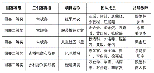 近日,第十四届全国大学生电子商务“创新、创意及创业”挑战赛(以下简称“三创赛”)全国总决赛的常规赛道和5个实战赛道陆续圆满收官,获奖团队公示完毕。我校参赛团队在常规赛、直播电商实战赛和乡村振兴实战赛等三个赛道中获得国家级竞赛奖项共5项,含国赛一等奖1项、国赛二等奖4项,优秀省赛组织奖1项。创下我校“三创赛”历史上获奖数量和等级的双重新高。