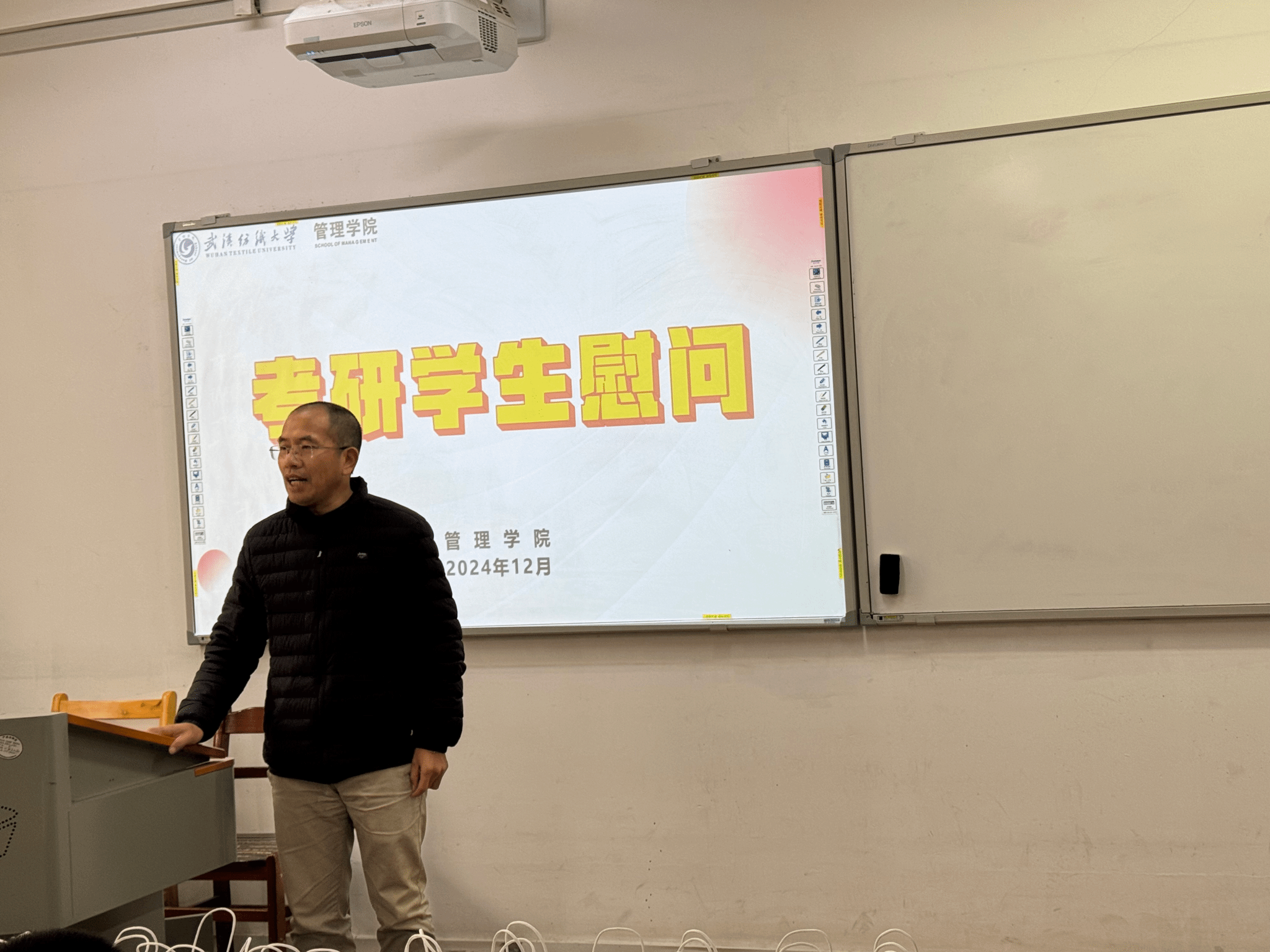 为帮助考研学子们缓解备考压力,鼓舞士气,坚定考研信心,12月5日下午3点半,bat365正版唯一官网在3栋104教室举办了2024年考研慰问活动,学院党委书记赵立彬、院长吴金红、党委副书记耿迪、2021级辅导员邓兰、牟迪及全体2021级考研学生参加。