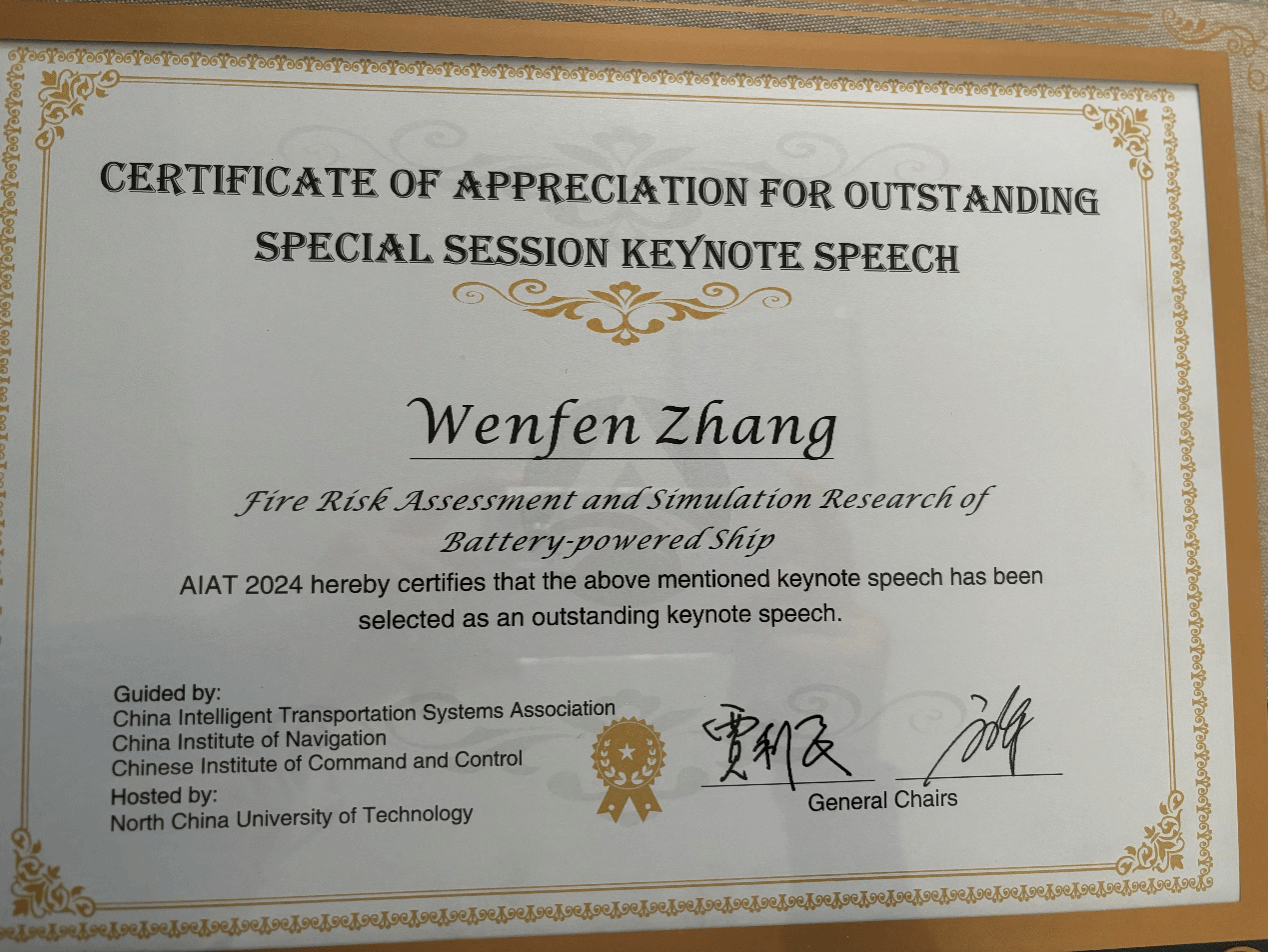 bat365官网教师张文芬副教授在智能水运技术分论坛中做了主题报告,报告题目《Fire Risk Assessment and Simulation Research of Battery-powered Ship》。在报告中,张文芬老师详细阐述了国内外电动船舶的发展现状,梳理了电动船舶火灾事故及安全特性,并介绍了电动船舶火灾事故机理、风险因素识别、火灾模拟仿真、应急救援等方面的研究成果,并与来自相关领域学者进行了深入交流和探讨,这些交流不仅加深了bat365官网与国际学术界的联系,也为未来的合作研究奠定了基础。