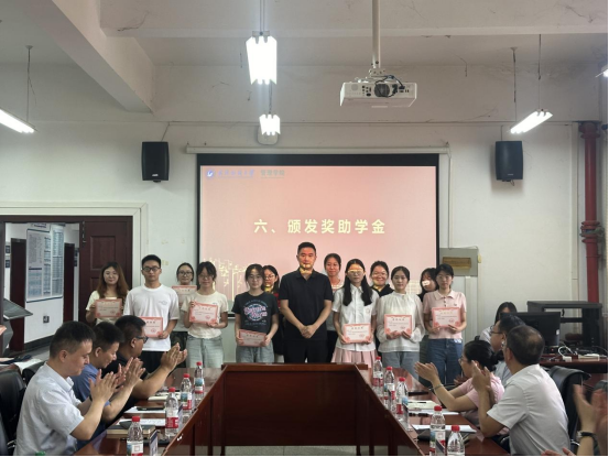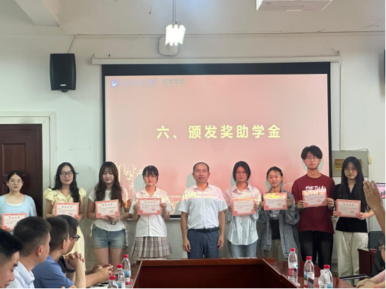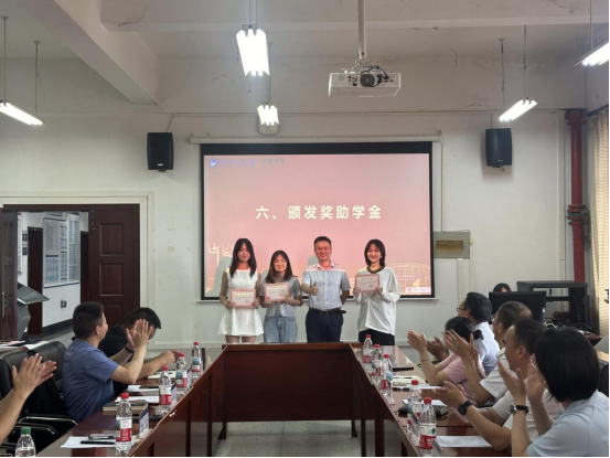 武汉乐驰传媒有限公司总监万拓为乐驰三等奖学金获得者颁奖