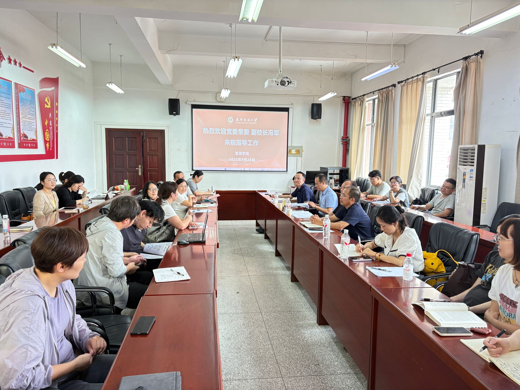 9月28日下午,校党委常委、副校长冯军到bat365正版唯一官网调研指导工作。科学技术发展院副院长王良波、人事处副处长袁国梁等陪同调研,就科研基金申报、年薪制教师考核等重点工作进行指导。学院领导班子、青年博士及教师代表参加座谈。会议由执行院长吴金红主持。