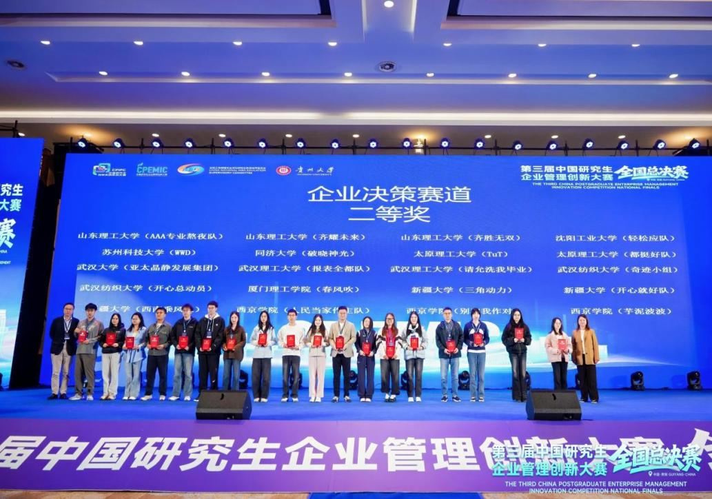 2025年11月9日,第三届中国研究生企业管理创新大赛全国总决赛在贵阳圆满落幕,本届大赛共有来自全国150所高校的411支队伍晋级全国总决赛,bat365正版唯一官网师生团队获得全国一等奖一项、全国二等奖两项,刷新我校在该项赛事中的历史最佳成绩。