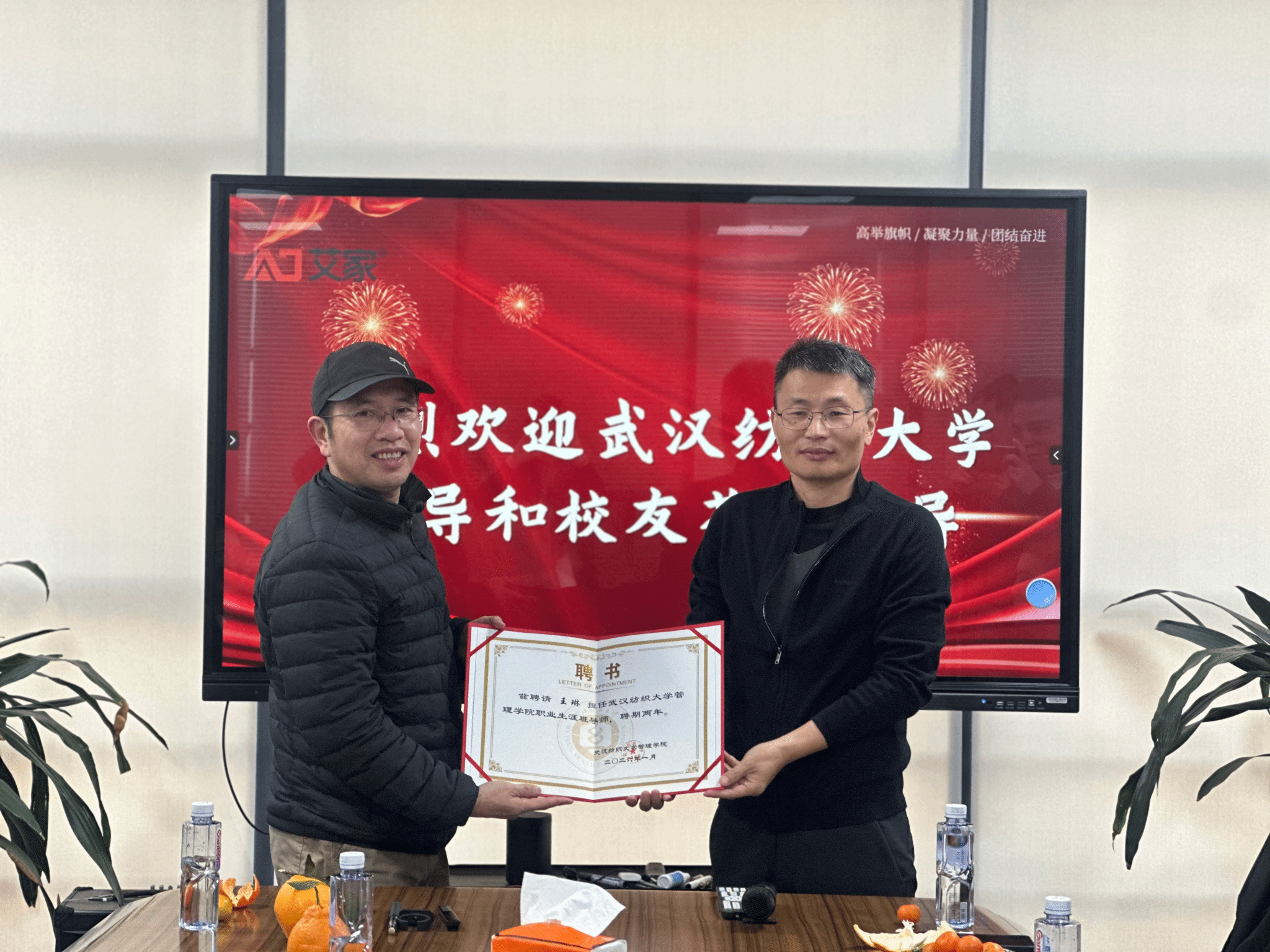 座谈现场,吴金红为吕仕敢、王琳、杨洲文三位校友颁发职业生涯班导师聘书,希望校友发挥行业经验优势,立足企业实践视角,为学院学生职业规划、就业指导传经送宝,助力学生成长成才。