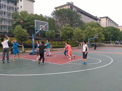 为增进校内职工之间的友谊,4月14日下午,bat365正版唯一官网与国际教育学院在南湖校区举办了一场篮球场对抗赛。