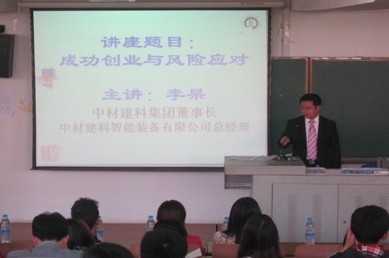 “大成功者一定是大梦想者,大梦想者一定是大磨难者,苦难往往是我们人生的老师”,李杲先生以中材建科集团的第一宣言为导言,为同学们剖析创业之路。他提到,创业是一个持续的过程,当代大学生应该树立起正确的价值观,用知识去创造价值,实现持续而非昙花一现的成功,并结合自身经历向大家传授创业经验,归纳了成功四要素,即“走正路、有梦想、脚踏实地、提前考虑到最坏的结果”。同时,他也强调了终身学习的重要性,告诫同学们用知识武装自己,机会总是留给有准备的人,要在实践中碰撞梦想,实现价值。在交流环节中,李先生就创业与风险的话题进行分析,并对同学们提出的问题一一解答,现场氛围活跃。