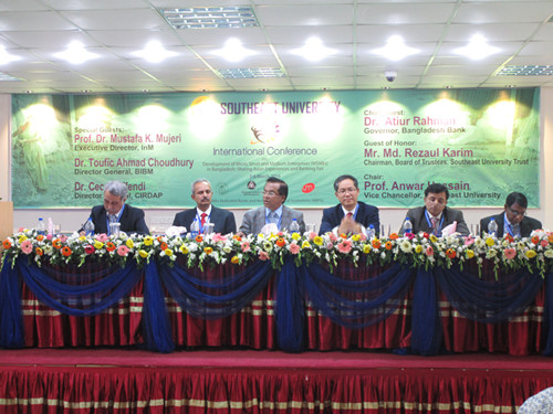 3月6日,“分享亚洲经验”国际中小微企业管理会议在孟加拉达卡东南大学正式召开,本次会议由东南大学携手孟加拉银行、孟加拉银行bat365正版唯一官网、银行和非银行金融学院,微观金融学院、以及亚太地区联合发展中心共同举办。会议邀请了来自中国、印度、泰国、马来西亚等十多个亚洲国家和地区的知名学者、专家,以及银行金融机构高管、中小企业家近百人参与会议。