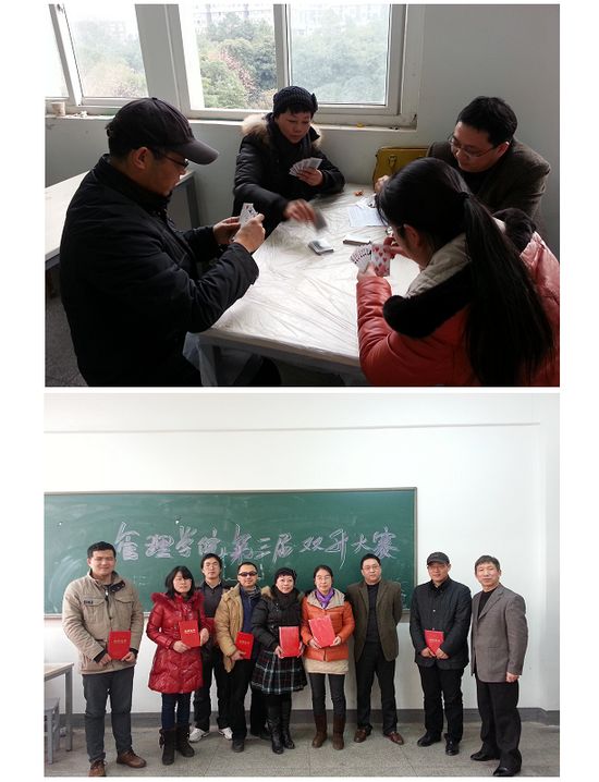 本次活动本着“健康娱乐、益智怡情、和谐互动”的理念,院工会提供竞赛规则、统一比赛用牌。参赛人员自行组队搭配,经初赛角逐后,每只队伍产生一队选手参加复赛。16对选手,在比赛中充分施展技术,默契配合,力争上游。经过激烈的争夺和层层淘汰,通过16进8、8进4的淘汰赛,最终决定出一二三等奖。