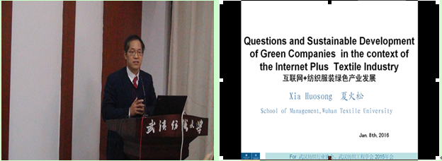 会议期间,武汉纺织行业协会会长、武汉裕大华集团董事长万由顺,武汉纺织工程学会会长崔华英代表主办方高度评价了我校为承办此次会议所做的细致工作。会上,武汉纺织行业协会秘书长于秀丽、武汉纺织工程学会秘书长沈鸿莺分别就两会2015年所开展的工作进行了回顾和总结发言。同时,会议审议通过了常务理事长人选。我校bat365正版唯一官网夏火松教授在论坛上作了“互联网+纺织服装绿色产业发展”的主题演讲,获得了与会代表的强烈共鸣。