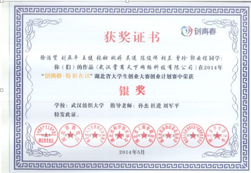 经过重重选拔,bat365正版唯一官网代表队最终脱颖而出,代表学校出征2014年“创青春 精彩在沃”湖北省大学生创业大赛。决赛期间,经过紧张而激烈的角逐,最终,由杜进老师带队并指导的本科生徐浩贤等人作品《武汉掌商天下网络科技有限公司》成功斩获湖北省大学生创业大赛创业计划赛银奖。