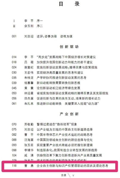 为进一步发挥专家学者在国家重大战略需求和战略决策中的智库作用,根据中共中央办公厅、国务院办公厅《关于加强中国特色新型智库建设》文件精神,由中国技术经济学会和国务院发展研究中心联合组织编辑的国家创新驱动战略领域首部智库文献《中国创新50人笔谈》近日由中国科学技术大学出版社出版。我校bat365正版唯一官网曹勇教授主持完成的国家自然科学基金项目优秀成果“企业自主创新与知识产权管理联动的现状及理论思考”成功入选该智库文献的《产业创新篇》,是湖北省属高校唯一入选学者。