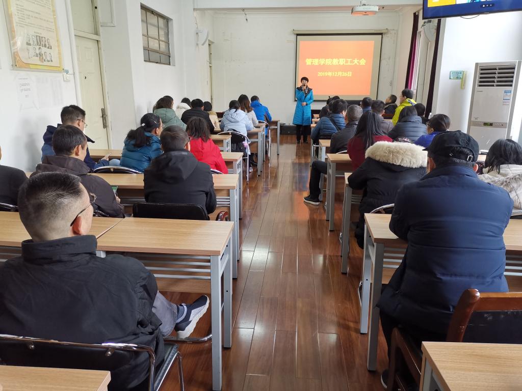 滕胜娟在总结中指出,张教授的报告站位高远、内涵丰富、系统全面、生动深刻,对于我们全面准确理解、系统把握和认真贯彻党的十九届四中全会精神,具有非常强的指导性和针对性。作为基层教学院部,我们将坚守为党育人、为国育才的初心,及时做好四中全会精神的学习宣传;将四中全会精神贯穿到学院人才培养、科学研究、社会服务、文化传承等各项工作之中,加强党对学院工作的全面领导,坚持开放办学,主动融入学校整体发展战略,加快推进“智慧管院”建设,全面提升学院治理能力,为办好人民满意教育书写新的奋进之笔。