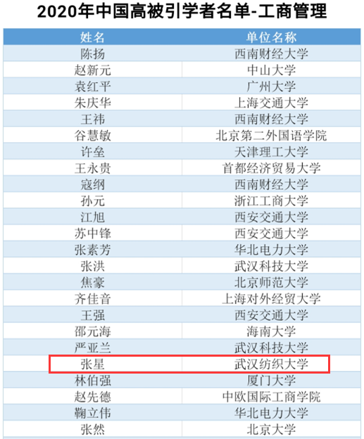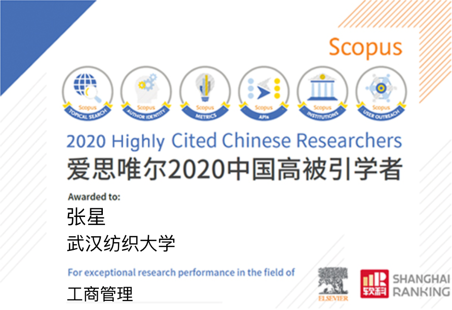 4月22日,全球性信息分析公司爱思唯尔(Elsevier)正式发布了2020年中国高被引学者(Highly Cited Chinese Researchers)榜单,我校bat365正版唯一官网张星教授作为工商管理学科学者成功入选。据了解,在2020年管理学科大类中,共2所湖北省属高校3位学者入选。
