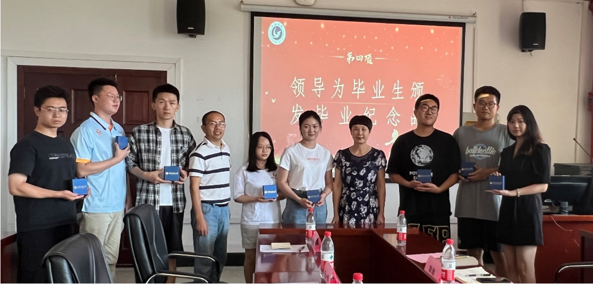 会议最后,院党委书记滕胜娟与院长吴金红代表学院向毕业生代表们赠送了精美的毕业生纪念品并合影留念,寄语毕业生们继续关注母校发展,始终铭记“崇真尚美”的校训,秉承“自强不息,经天纬地的纺大精神,不负时代,不负韶华,努力奋斗,积极投身于社会主义建设之中,在各行各业绽放出属于纺大人、管院人的风采。